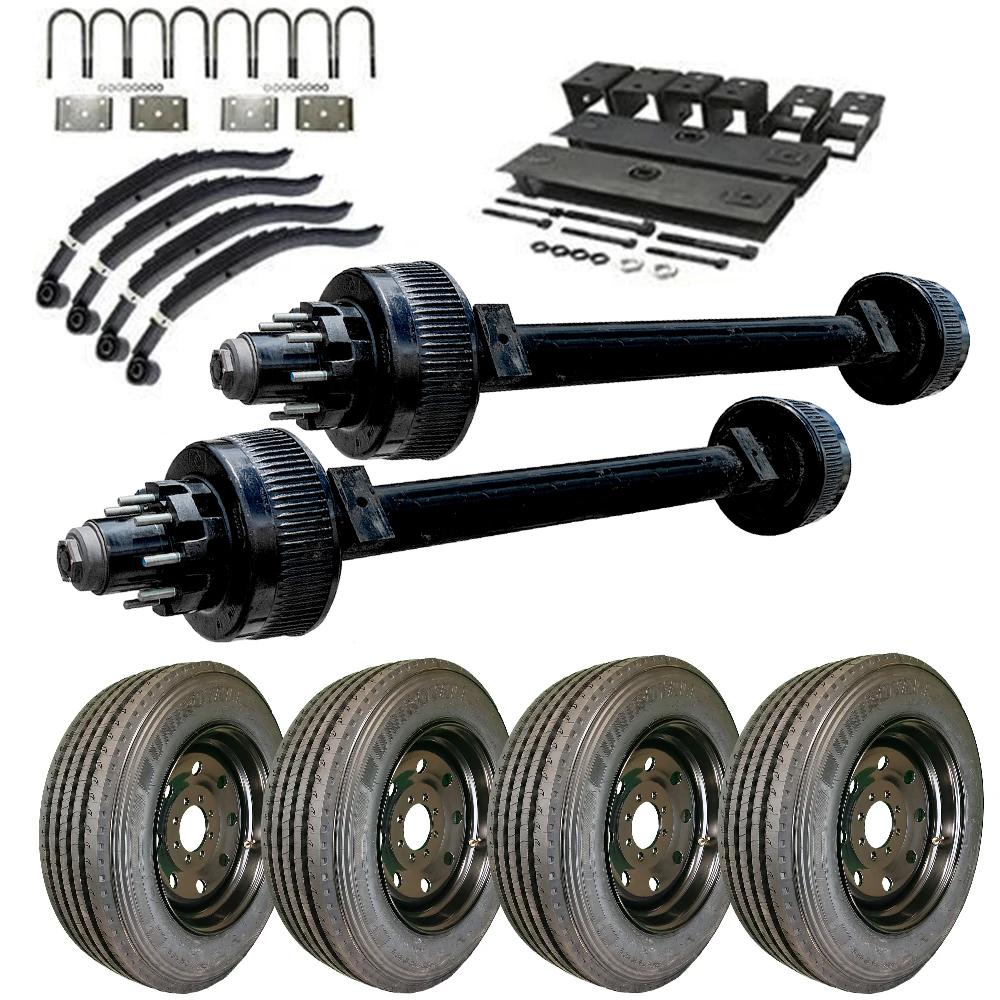 When one of your trailers breaks down, you want to get it back on the road as soon as possible. With this 12K Tandem Lippert Axle trailer kit, you can repair your broken trailer, or build a new one that will serve your business better than the old one. Each kit has two 12K electric drum brake axles, four 6K slipper springs, two 6K U-bolt kits, one tandem hanger kit, and four 17.5" 18-ply radial tire and wheel assemblies. We've bundled everything together so that you can place one order, instead of having to buy each part individually. Purchase your new 12K axle kit today!