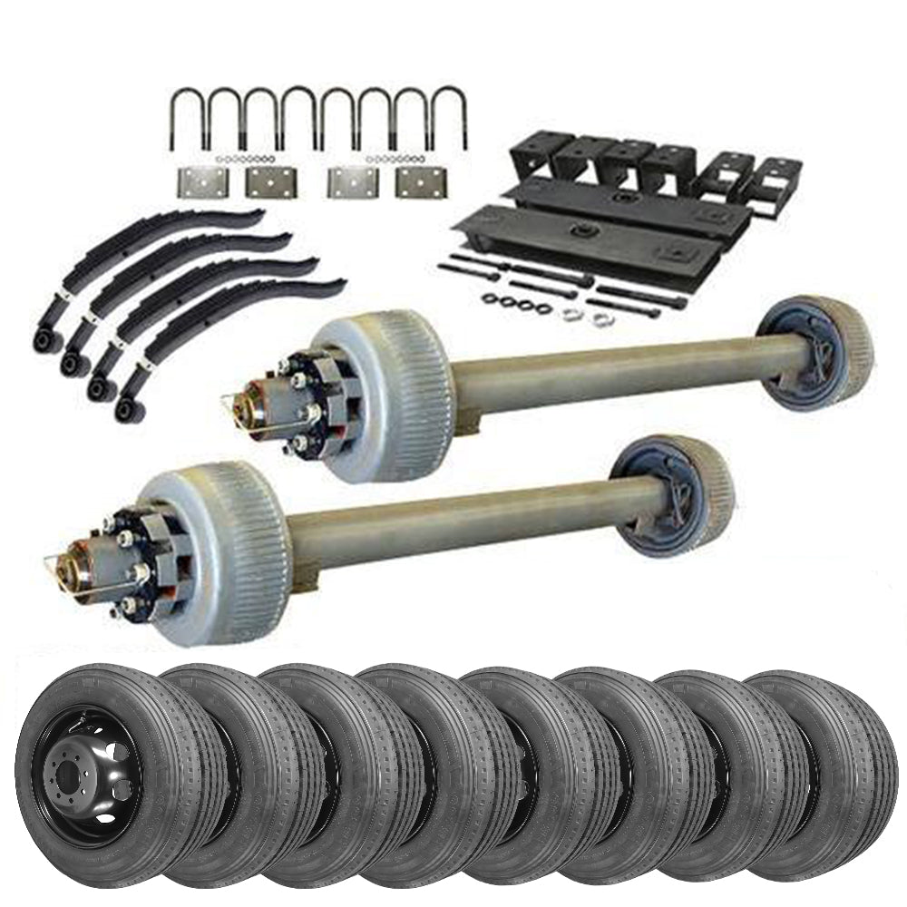 At The Trailer Parts Outlet, we believe that finding new parts for your old or new trailer should be easy. That is why we've created this 12K tandem axle trailer kit to include everything you need to build or repair your trailer and get it on the road. Each kit comes with the axles, suspension, and tire and wheel assemblies that you need to get the job done quickly and effectively. The axles come fully assembled and have spring seats welded on the bottom, making installation a breeze. If you have questions about this 12K kit, then please contact us right away.