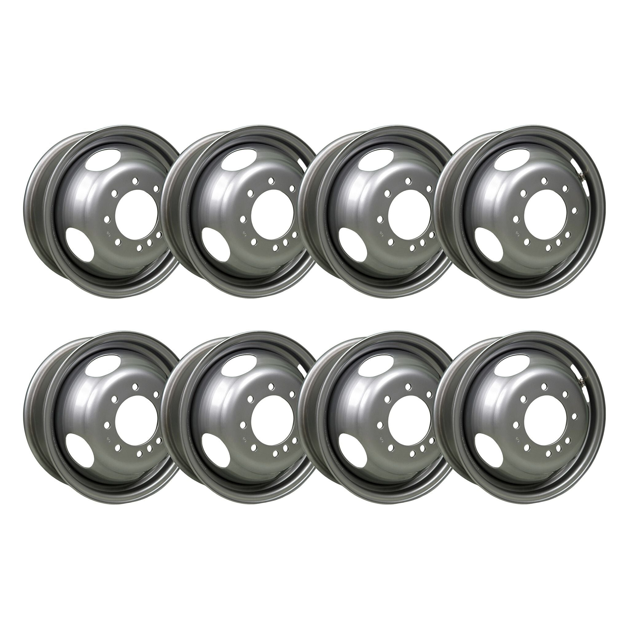 Mejore su remolque con esta llanta doble modular de acero plateada de 16 x 6 pulgadas , diseñada para ofrecer durabilidad, rendimiento y seguridad. Diseñada para cumplir con las especificaciones del Departamento de Transporte (DOT) , esta llanta soporta hasta 3750 lb , lo que la hace ideal para remolques de equipo, remolques de volteo, transportadores de carga y más.