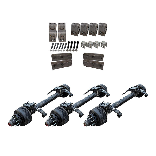 When you're building or repairing a trailer, you don't want to have to go to 10 different stores to find the parts you need. You want to find everything in one place, and that's why we're proud to offer this 12K Triple Lippert Axle trailer kit. Each kit has the axles and suspension that you need to put your trailer together and get it back on the road. The axles come fully assembled, and you'll love how easy it is to install them on your new flatbed, lowboy, or gooseneck trailer. Order your new 12K trailer kit now!